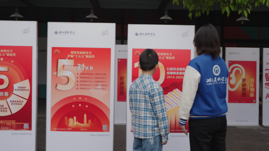 湖北美术学院针对宣传主题制作了一批国安、保密主题宣传海报现场展出,深受群众喜爱,在现场驻足观看。