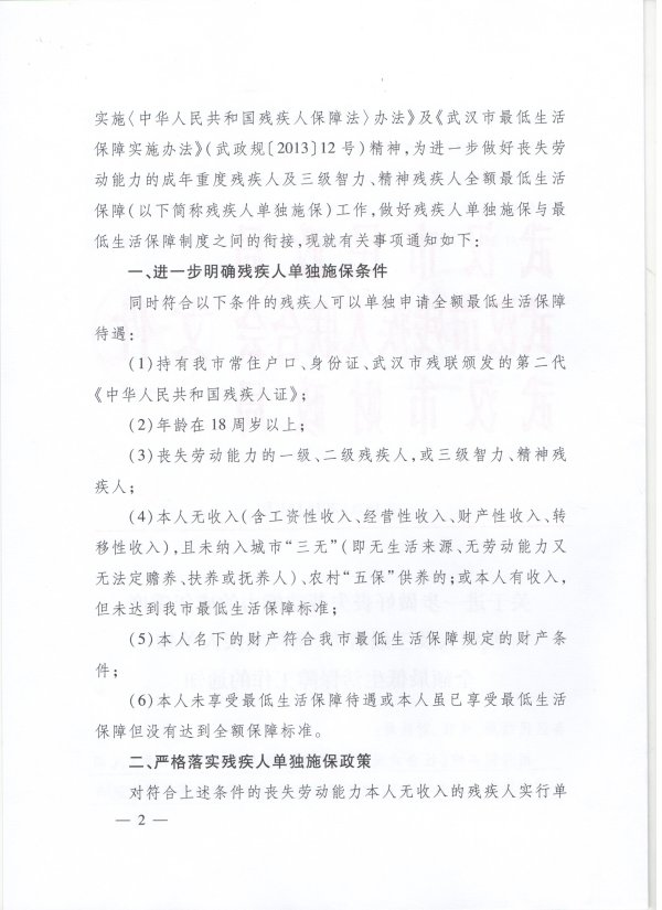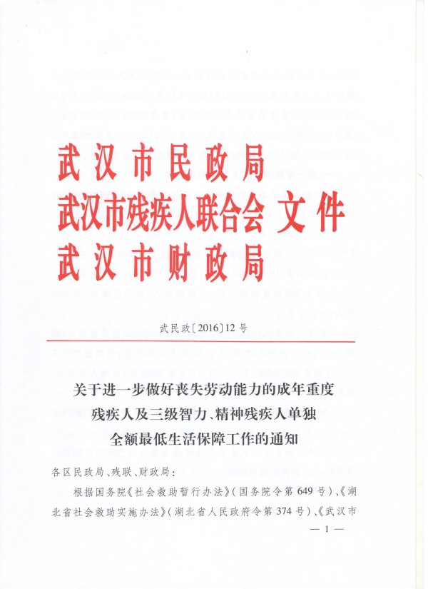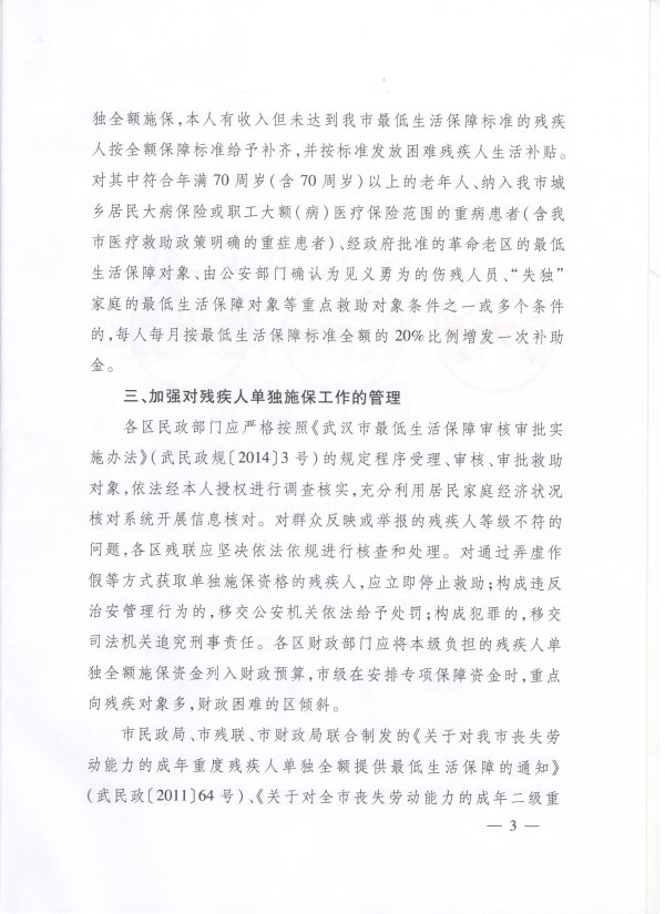 关于进一步做好丧失劳动能力的成年重度残疾人及三级智力、精神残疾人单独全额最低生活保障工作的通知