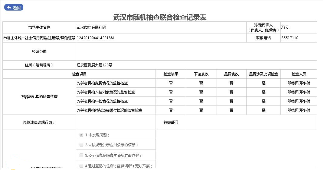 2019年对市社会福利院执法检查结果